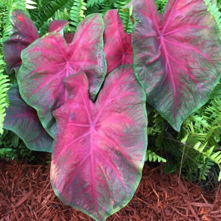 Caladiums are beloved for their striking foliage, not flowers. Their large, colorful leaves often feature intricate patterns and veining that create eye-catching contrast in any setting. Available in a wide variety of cultivars, Caladium plants can display bold reds, delicate pinks, clean whites, and vibrant greens—sometimes all on the same leaf!